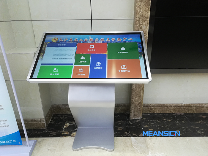 在工會大廳,放置臥式觸摸查詢一體機,立式觸摸一體機,移動觸摸一體機,來往的職工可以第一時間通過觸摸一體機,查詢需要的資料。觸摸一體機與工會內部系統對接,除了可以進行信息發布,發布工會動態外,還提供線上入會申請、工會組建、幫扶救助、法律援助、就業服務、普惠福利等入口,方便群眾自助瀏覽,深入了解工會的各項職能服務。除外,還具有辦事指南、地圖導航,方便大家前往目的地,充分體現工會數字社會服務的智能化、人性化、現代化,以服務為重點,為職工提供精準化、多層次服務。